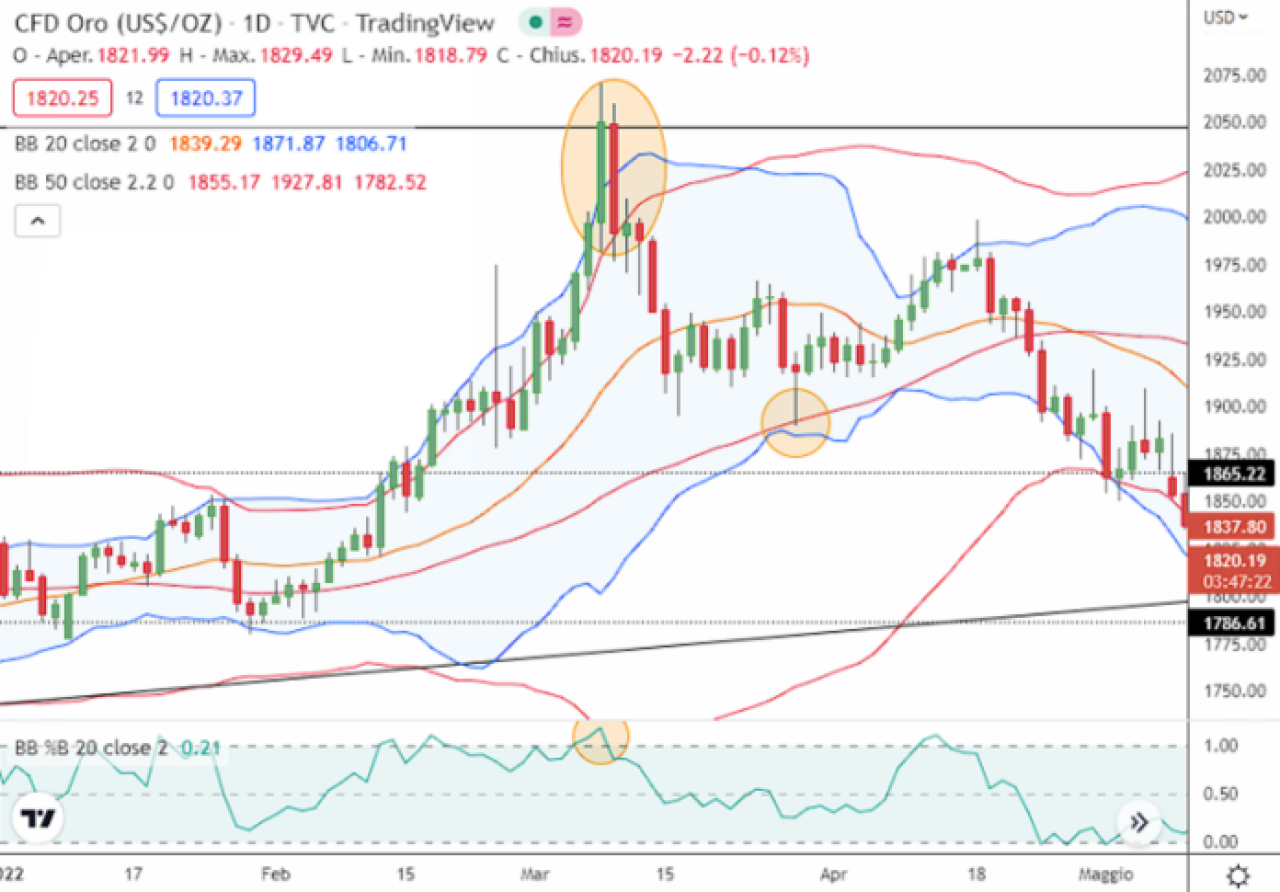 Questo indicatore ci permette di capire la posizione del prezzo rispetto le Bande di Bollinger.