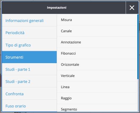 I Time Frame o periodicità appaiono in alto a sinistra del grafico.