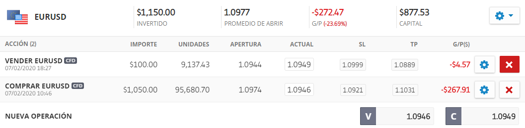 Gestione dell'operazione con eToro Webtrader